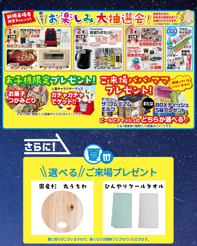 期間中は楽しいイベント・うれしいプレゼント盛り沢山で、皆様のご来場をスタッフ一同、心よりお待ちしております。